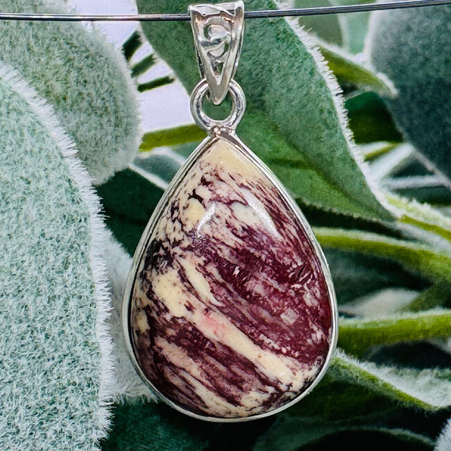 Each Alunite pendant is ethically sourced and selected for both its natural beauty and energetic integrity. The sterling silver teardrop bezel protects the stone while showcasing its unique texture and coloring. Your pendant comes with an informational card so you can fully understand and work with its supportive properties.