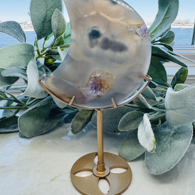 Invite clarity, grounding, and celestial energy into your space today with this Amethyst & Agate Crescent Moon.
