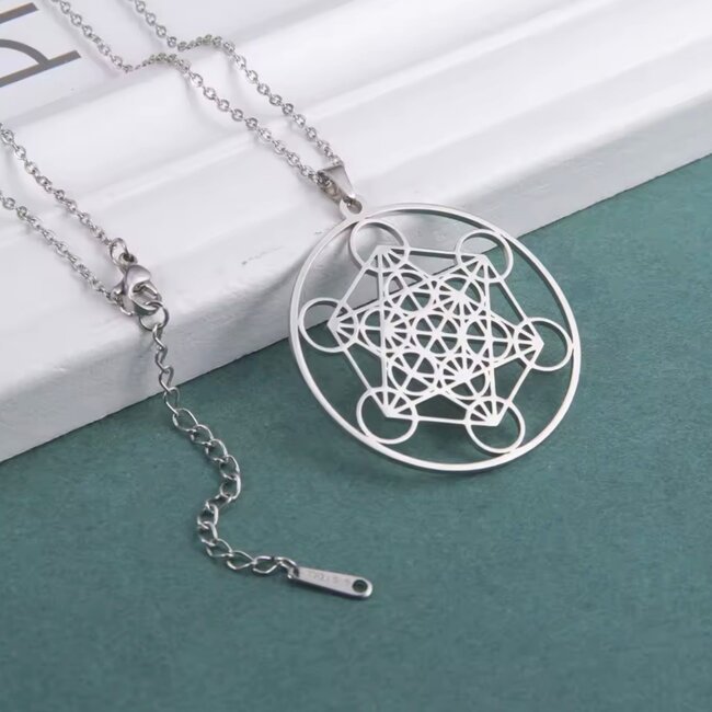 Archangel Metatron’s Cube Necklace – 1.5" Pendant – 24" Stainless Steel