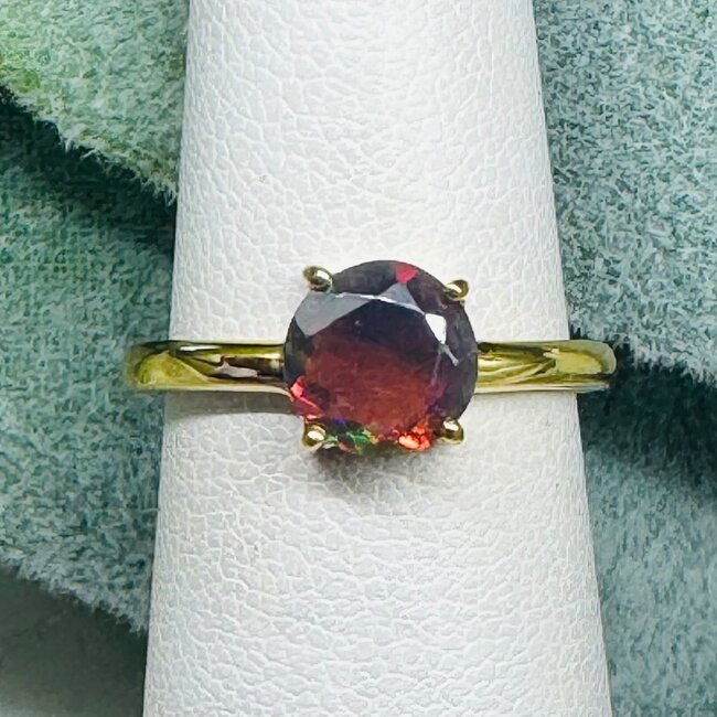 The faceted cut enhances the opal’s natural fire and depth, while the claw prong setting allows maximum light to pass through the stone, amplifying its energy and visual brilliance. The 18k gold vermeil adds warmth and luxury, perfectly complementing the opal’s dark, enchanting tones. Each ring is crafted using ethically sourced stones and includes an informational card detailing the opal’s metaphysical properties and care.