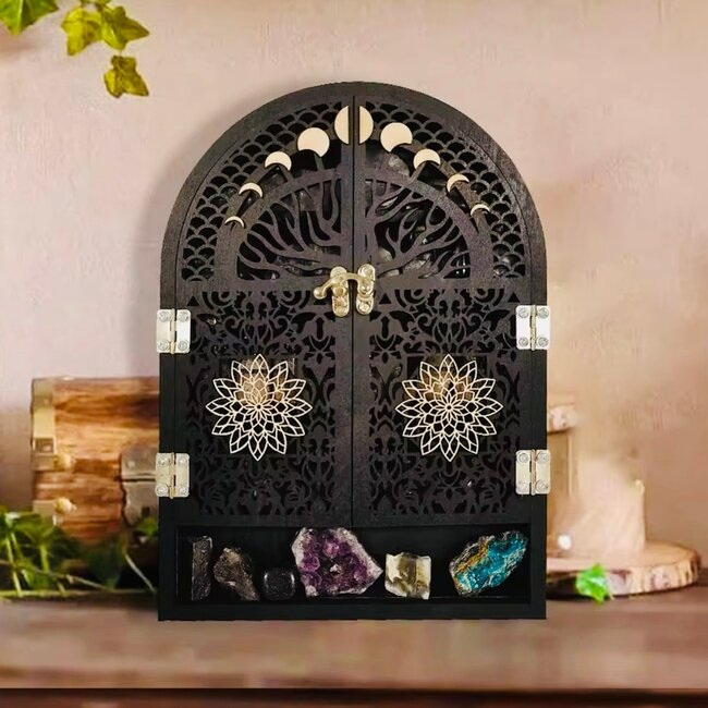 The delicate filigree design of the sun and moon represents the perfect balance of light and dark, yin and yang—reminding you to embrace both strength and serenity in your journey. Whether placed in your meditation corner, bedroom, or altar, this shelf enhances the flow of energy, promoting harmony and intention in any space.