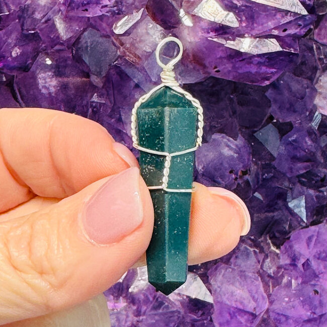 Harness the powerful energy of Bloodstone—also known as Heliotrope—with these beautifully handcrafted wire-wrapped point pendants. Known for its deep green color flecked with rich red spots, Bloodstone is a legendary stone of courage, vitality, and protection.