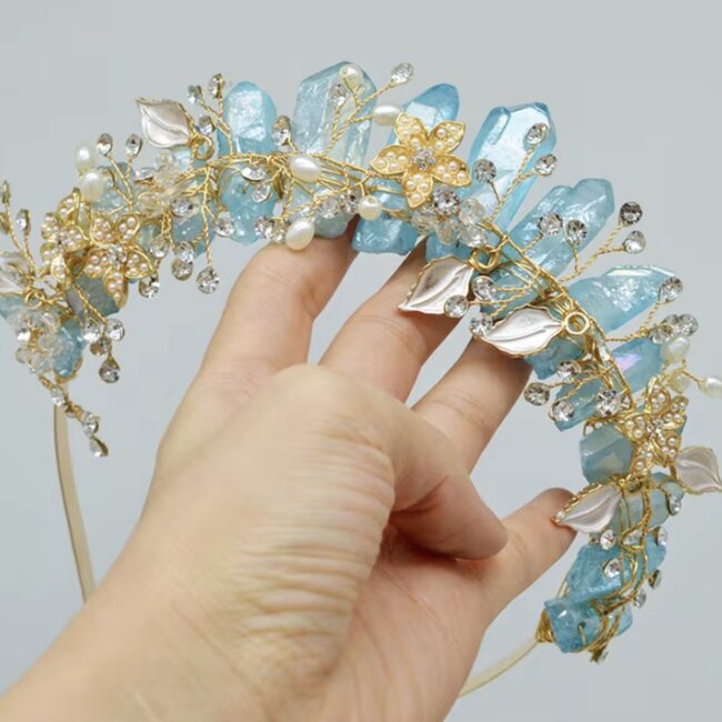 Ethically sourced and thoughtfully created, this tiara comes with an informational card to guide you in connecting with the energy of Blue Angel Aura Quartz and wearing it with intention.