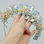 Handcrafted with meticulous care, the crown features radiant Blue Angel Aura Quartz points, delicate floral accents, and shimmering pearls, all mounted on a durable gold-plated frame. Its adjustable design ensures a comfortable and secure fit, making it perfect for special events, spiritual gatherings, or sacred rituals.