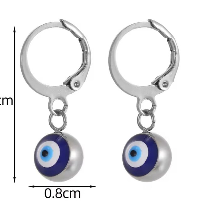 Blue Evil Eye Earrings – Dangle Round Clasp, Silver Plated