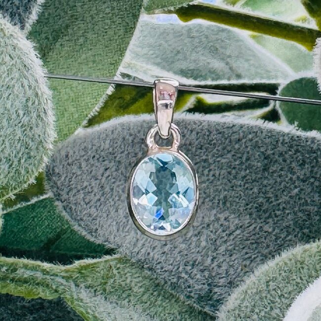Blue Topaz Pendant - Oval Faceted Bezel Set - Sterling Silver - Awakenings