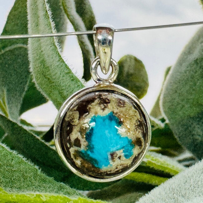Each Cavansite pendant is ethically sourced and carefully selected for its vibrant blue crystal formations and energetic quality. The sterling silver bezel setting provides durability while allowing the natural beauty of the stone to stand out.