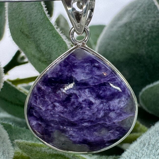 Each Charoite pendant is ethically sourced and selected for its rich coloration and energetic integrity. The sterling silver bezel setting protects and showcases the stone while allowing its natural beauty to shine.
