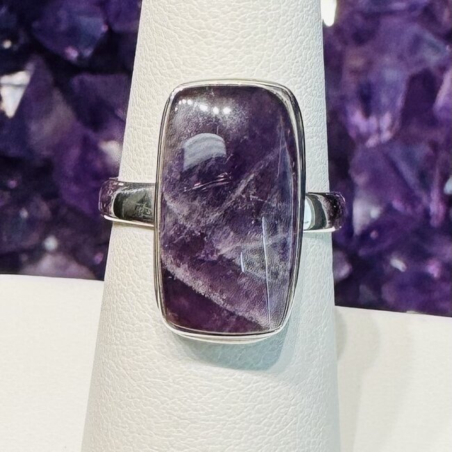 Chevron (Dream) Amethyst Ring – Size 8, Rectangle Bezel Set, Sterling Silver