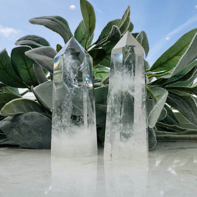 Each tower is carved from natural Clear Quartz and will display its own unique internal inclusions, clarity, and natural formations.