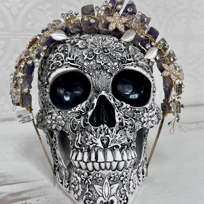 Amethyst Crown Tiara - Flowers & Pearls (Gold Plated) Crystal Headband Hair Accessories - Awakenings