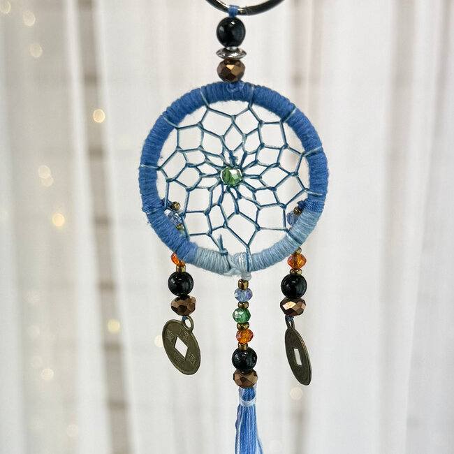 Dreamcatcher Dream Catcher Keychain - Blue Multi Colored with Tassel Feng Shui Coins & Decorative Beads
