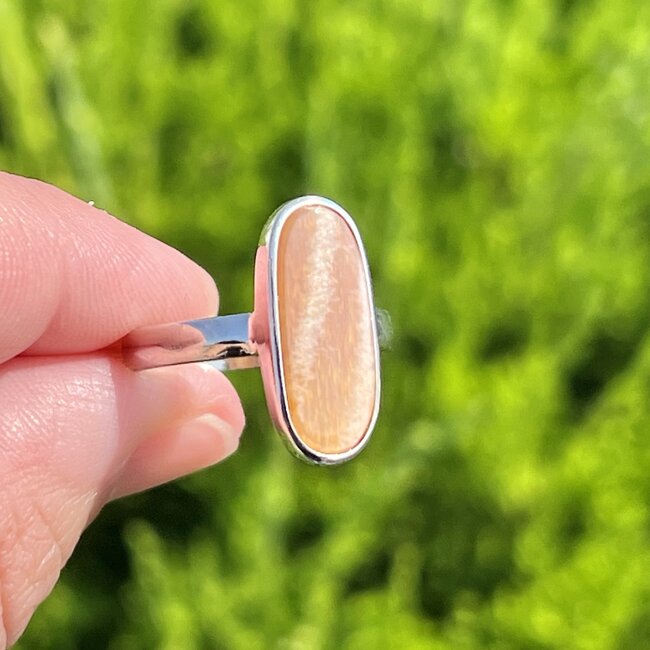 Golden Sunstone Ring - Size 7 Long Oval - Sterling Silver - Awakenings