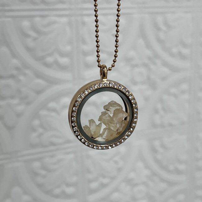 Sunstone (Heliolite) Inside Gold Locket (18-24") Rhinestone Necklace - Adjustable Magnetic Beaded Chain Pendant Charm