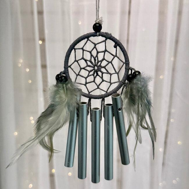 Create a calm, protected, and intentional atmosphere with this beautifully crafted Gray Dreamcatcher Windchime. Blending traditional symbolism with modern, neutral elegance, this piece is designed to bring peace, balance, and gentle energetic cleansing into any space.