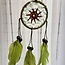 Dreamcatcher Dream Catcher Green with White & Brown Crochet Center & Green Feathers - Awakenings