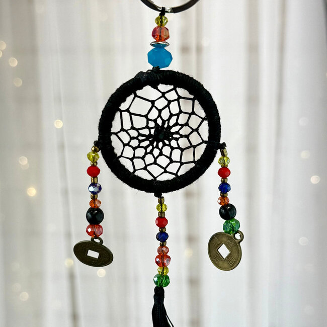 Our Dream Catcher Keychain – Black with Lucky Coins is a powerful symbol of protection and abundance designed to travel with you wherever life takes you. Blending the traditional meaning of a dreamcatcher with the prosperity symbolism of lucky coins, this compact piece serves as both a meaningful accessory and a daily energetic reminder.