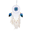 Evil Eye Blue Dreamcatcher – White Macrame Boho with White Feathers, Black & Blue Leaves, Beads 24”