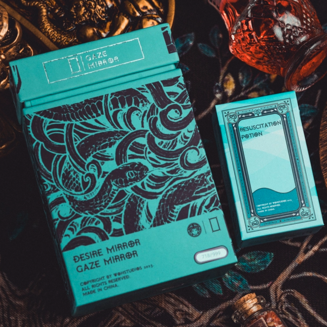 Product Details * System: Rider-Waite-Smith * Cardstock: 330 gsm German black core paper * Finish: aqueous coating, air-cushioning * Color: eco-friendly odorless ink COLLECTOR'S THEME: Desire Mirror SIZE: 70 * 120 mm (2.76 * 4.72 inch) EDGE: amber gold gilding PACKAGING: base-and-lid rigid box CONTENT: 78 tarot cards + 2 "Medusa" special cards + guidebook (English & Chinese) SYMBOLISM: element of air, wisdom & higher