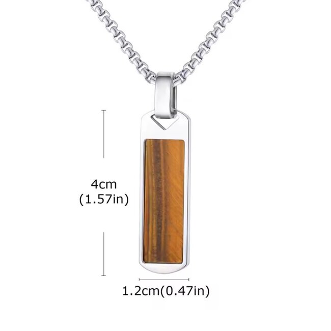 Gold Tiger’s Eye Dog Tag Necklace – Men’s 20" Rectangle Stainless Steel