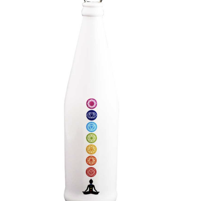 The glass bottle holder is designed to securely hold incense sticks while catching falling ash, helping keep your space clean and organized. Its simple yet striking appearance makes it a beautiful addition to meditation corners, altars, living spaces, or wellness studios. The neutral white color allows it to blend effortlessly with both modern and traditional décor while still highlighting the colorful chakra design.