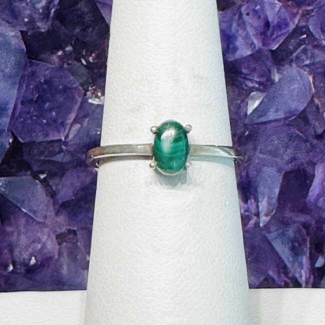 Malachite Ring – Size 6 – Oval Prong Claw Set – Sterling Silver