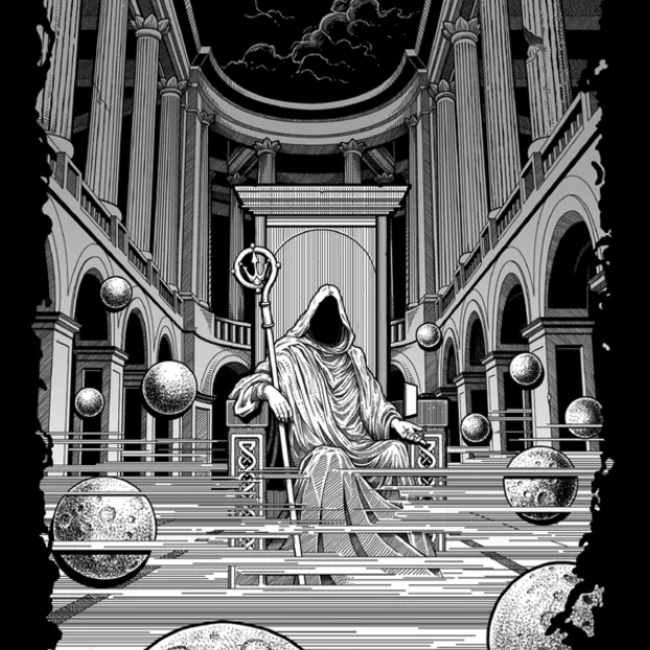 Myths, religions, Isekai fantasies, the Cthulhu Mythos, the occult... Taking inspirations from diverse origins, this Rider-Waite deck is centered around the idea of "controlled madness" and distinguished by its antique look and solemn mystique. With light and shadow being central motifs, all illustrations are drawn in black and white with fine point pen. The extensive use of lines for shading and the artist's attention to details establish a sense of order. The restricted palette creates depth and subtlety.