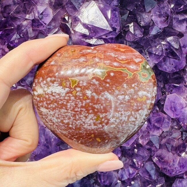 Each Ocean Jasper Heart is unique, featuring its own natural color patterns and formations, making every piece one-of-a-kind.