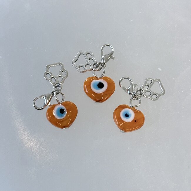 This thoughtfully designed piece blends powerful symbolism with heartfelt intention. The Evil Eye has long been regarded as a protective talisman, believed to deflect negativity and shield against unwanted energy. Paired with a warm orange hue, this charm carries associations of joy, vitality, and emotional warmth—perfect for pets who bring light, playfulness, and companionship into your life. The heart shape represents unconditional love, while the delicate paw accent serves as a reminder of the deep bond you share with your animal companion.