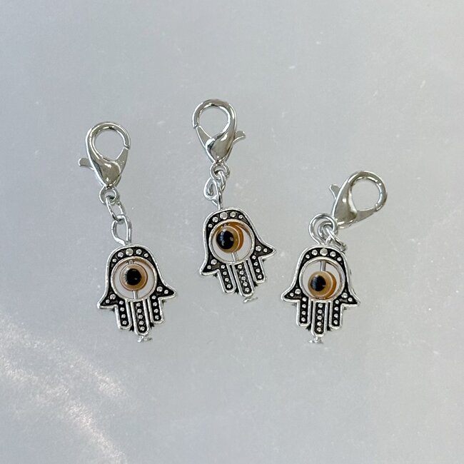 This meaningful charm combines two powerful protective symbols: the Evil Eye and the Hamsa, also known as the Hand of Fatima. Together, they are traditionally believed to guard against negativity, ward off harmful energy, and attract blessings, safety, and good fortune.