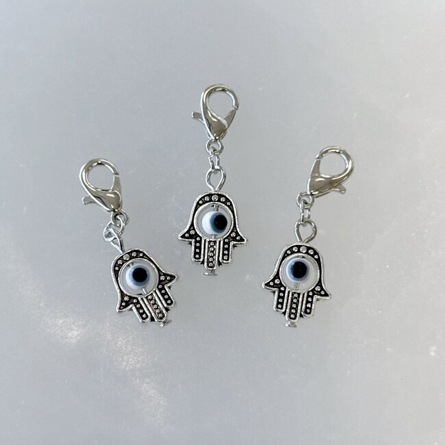 The White Evil Eye is traditionally known for its ability to deflect negative energy, jealousy, and unwanted spiritual interference. Its cleansing, purifying energy is believed to promote peace, emotional stability, and energetic clarity—helping your pet feel calmer, safer, and more grounded in their environment. Paired with the Hamsa Hand, a timeless symbol of divine protection, blessings, and good fortune, this charm creates a layered energetic shield that supports both physical and emotional well-being.