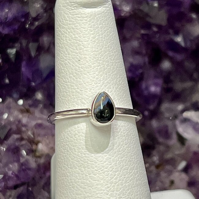 Pietersite (Tempest Stone) Teardrop Ring – Size 6, Sterling Silver