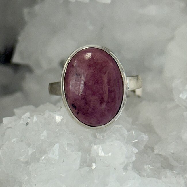 Bold, nurturing, and deeply restorative, this Rhodonite Ring is a powerful symbol of emotional healing and self-love. Featuring a beautifully polished oval Rhodonite set in a classic bezel of .925 sterling silver, this size 7.75 ring blends timeless style with meaningful, heart-centered energy.