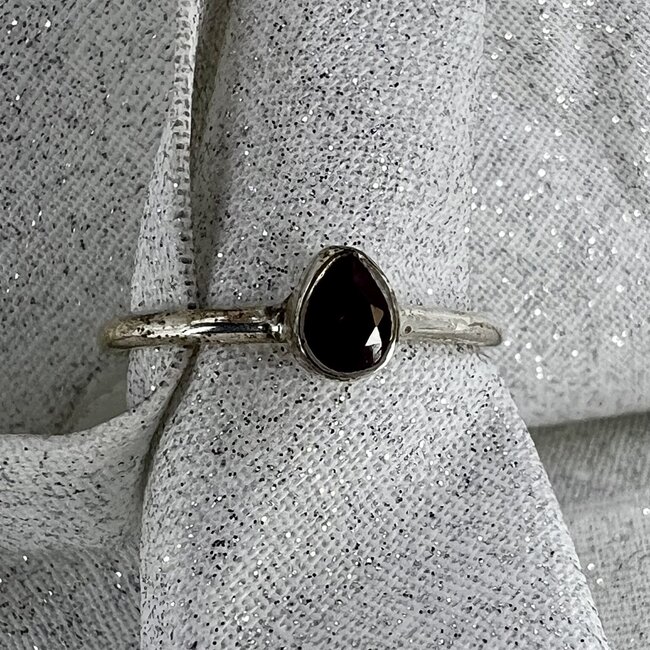 Ruby Ring - Teardrop Pear Size 7 Faceted Sterling Silver