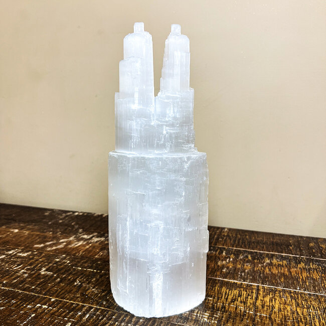 Let the pure, angelic energy of Selenite uplift your space and spirit. Order your Selenite Iceberg Tower Lamp today!