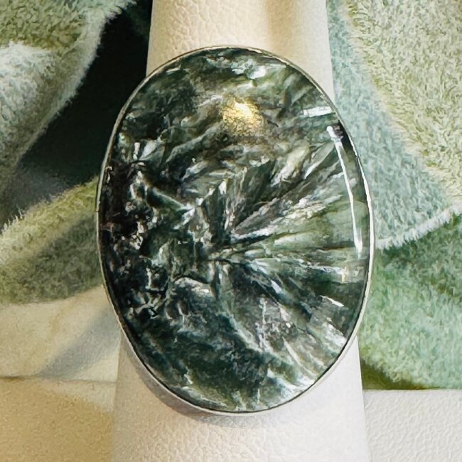 Step into the divine energy of Seraphinite, a rare and ethereal gemstone known for its shimmering green hues and angelic connections. Named after the Seraphim angels, this stone is a powerful tool for spiritual awakening, heart healing, and energetic alignment. Seraphinite is perfect for those seeking to deepen their intuition, connect with higher realms, and experience profound emotional renewal. Set in sterling silver with a secure bezel setting and an adjustable band, this ring is a must-have for those looking to elevate their spiritual journey and embrace inner harmony.