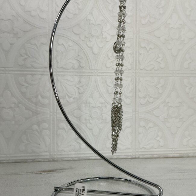 Finished in a polished silver tone, this stand pairs beautifully with cool-toned crystals and modern décor while maintaining a timeless, mystical feel. It’s ideal for displaying crystal spheres, hanging charms, sun catchers, or seasonal accents with intention and style.