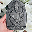 Invite wisdom, transformation, and sacred protection into your space with this stunning 6" Silver Sheen Obsidian Ganesh Carving Tile. Skillfully hand-carved from ethically sourced Silver Sheen Obsidian, this striking piece features the beloved Hindu deity Ganesh, known as the remover of obstacles and the guardian of new beginnings.