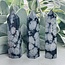 Embrace the powerful grounding energy of Black Snowflake Obsidian with this Medium Tower Generator (2-3 inches). A unique blend of deep black Obsidian and soft white snowflake-like inclusions, this stone serves as a powerful spiritual cleanser, helping to release negativity, promote emotional balance, and strengthen resilience. Whether you're working on deep healing, seeking clarity, or looking to ground your energy, this Snowflake Obsidian tower is a must-have for your crystal collection.