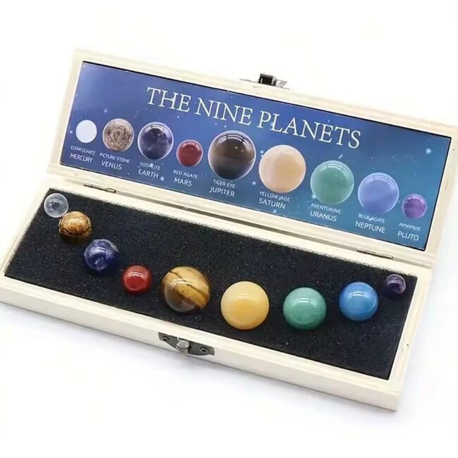 Bring the cosmos into your home or classroom with this Solar System Set & 9 Planet Wooden Display Kit, featuring natural crystals to represent each planet. This educational and metaphysical set combines beauty, learning, and energetic resonance, making it perfect for collectors, students, and anyone interested in astronomy or crystal energy.