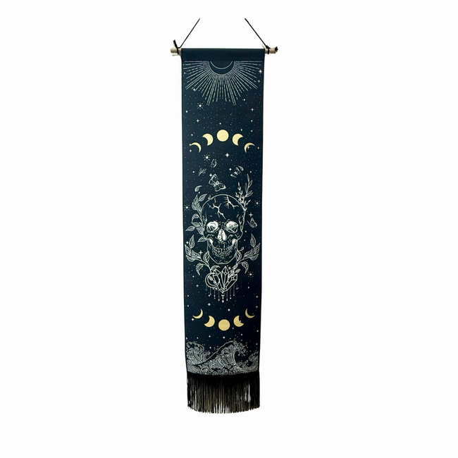 Measuring a generous 53" x 12.5", this large banner makes an eye-catching vertical statement while remaining sleek and versatile. Ideal for gothic, mystical, or modern spiritual décor, it blends seamlessly with crystal displays, tarot spaces, or ritual setups.