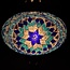 The distinctive “Turkish mosaic lamp” style uses hand-cut colored glass pieces arranged into intricate patterns (geometric, floral, star motifs, etc.), set in plaster or another adhesive around a glass globe or shade.