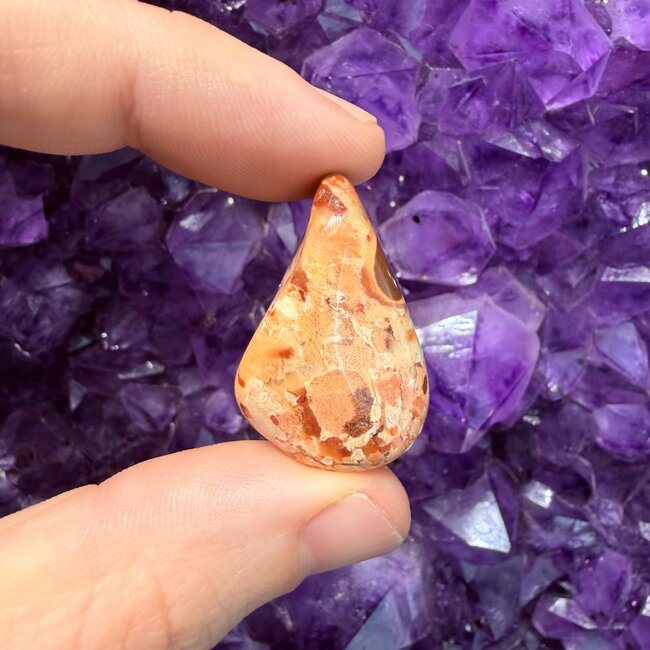 White Brecciated Jasper is highly valued in the world of energy work for its grounding and stabilizing properties. Spiritually, it is believed to create a strong energetic foundation that helps you remain centered while exploring personal growth and transformation. Many practitioners turn to this stone to strengthen their connection to the earth, enhance spiritual awareness, and maintain energetic balance during meditation or spiritual practices.